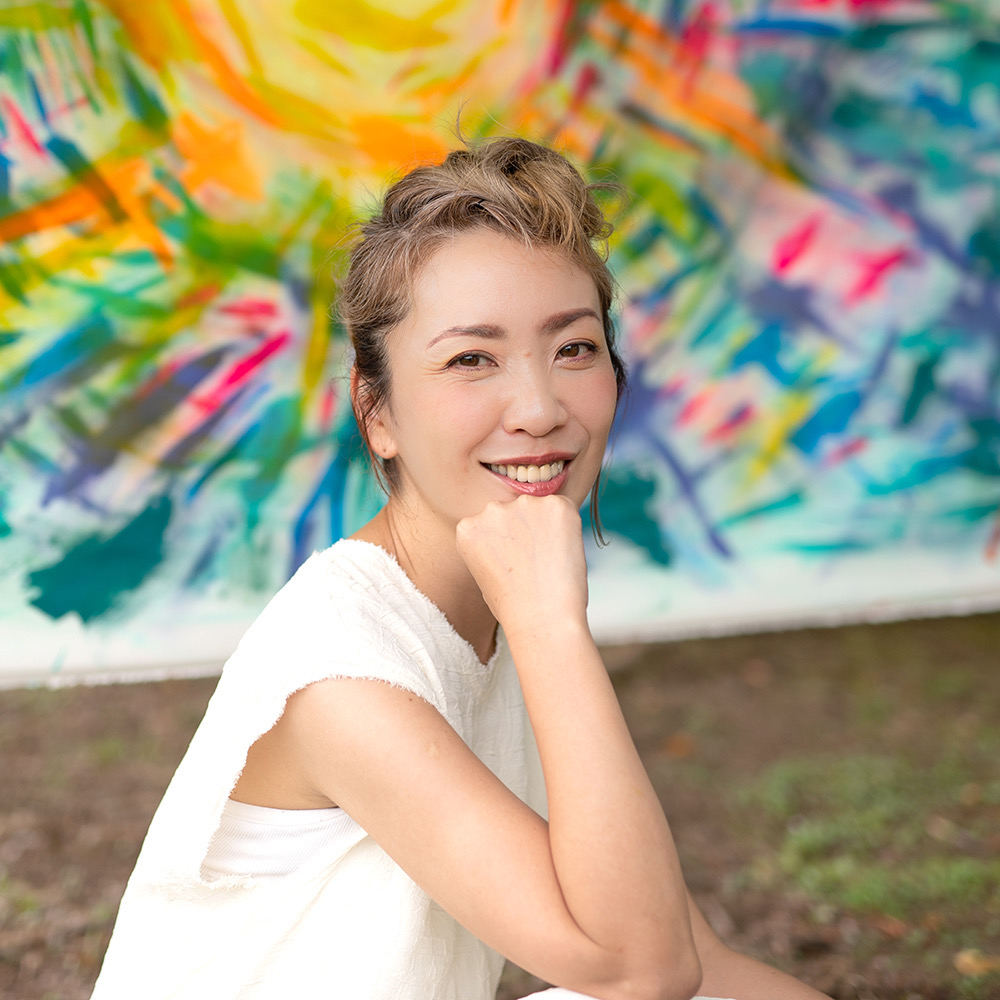 デザイナー/イラストレーターとしてキャリアをスタート。婚約者との死別や結婚・出産・子育てを経るなかで社会的な役割を果たさなければならないと自らの可能性を閉ざしていたことに気づく。「魂」が望むものを追求するなかで、スピリチュアルな生き方と自らの使命に目覚める。日本の抑圧された社会を生きる女性たちに向け、作品を通して「自分らしい生き方とはなにか」を問い続けている。